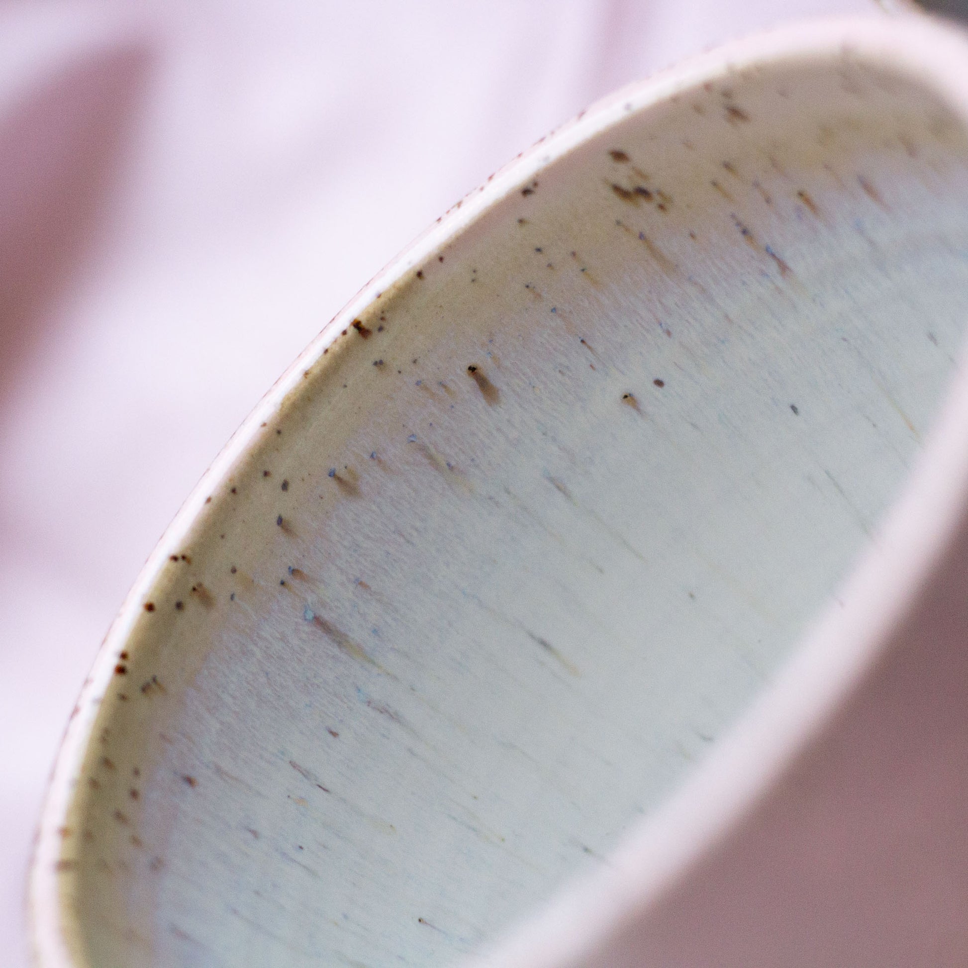 Clay is a natural material; natural variations such as small speckles and slight irregularities in the finished product can occur. This is the beauty of small-scale craft and not a blemish.
